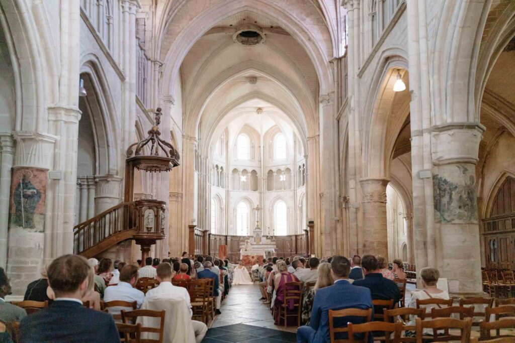 Nous avons ensuite pris la route pour l’église d’Auxonne, à une vingtaine de minutes du château. Un très bel édifice, dont l’architecture et la lumière naturelle apportent beaucoup de caractère. La cérémonie religieuse s’est déroulée dans une atmosphère à la fois sobre et touchante, parfaitement portée par la beauté du lieu.